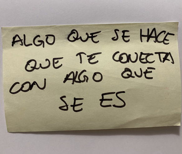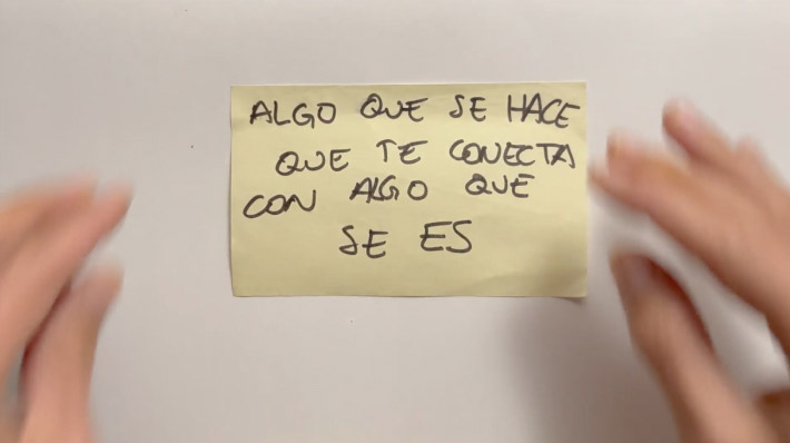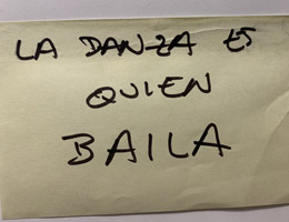 Otra práctica que se dedica a ser canal de las palabras de otras, palabras que hablan de nuestra profesión y de lo que de ahí se deriva. Esta práctica trata de generar un diálogo en diferido entre bailarinas de diversos lugares. Una cadena de mensajes de audio en la que somos canal de las palabras de otras compañeras. Se trata de escuchar, repetir, contestar, generando un red de mensajes y saberes entre bailarinas contemporáneas de diversos contextos, lugares, momentos vitales, etc. A esta práctica la llamamos: Traducción (Testimonios)
