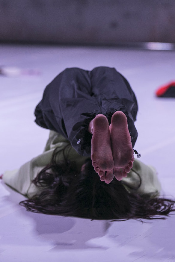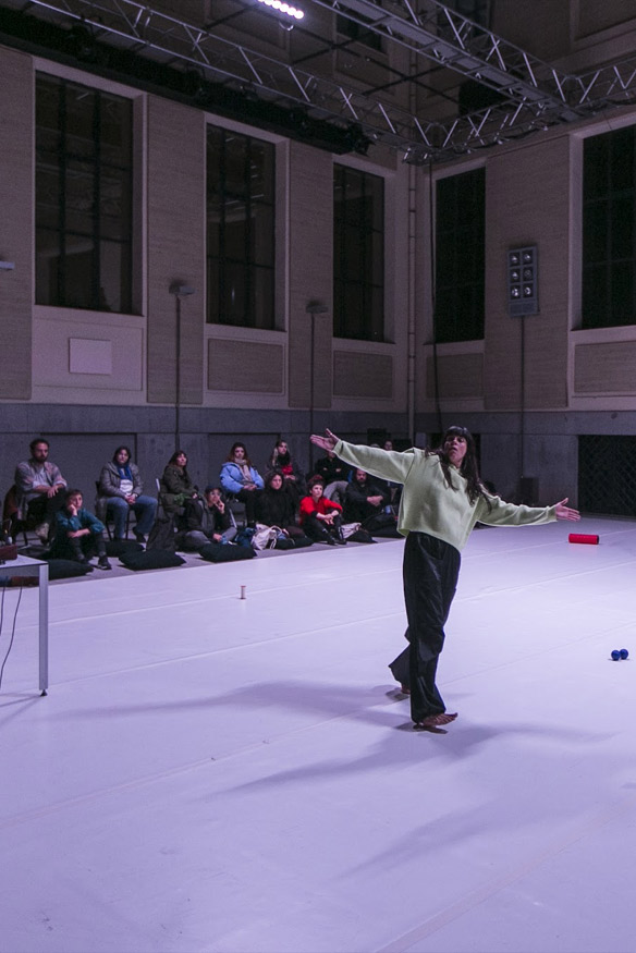 Una práctica que trata de rescatar movimientos que hemos aprendido e incorporado a lo largo de nuestra vida y que relacionamos con otras personas, lugares, técnicas, deseos, sueños, imaginaciones. Durante esta práctica no tratamos de generar nada nuevo. Trabajamos para construir un estado relacionado con la intuición donde dejar que aparezcan nuestras memorias. Tratamos de mover, observar, nombrar y seguir. Nos situamos en un lugar donde “dejarse mover” y a la vez analizar lo movido. Entre el “pensar” y “no pensar”. Entre el “hacer” y “no hacer” A esta práctica la llamamos: Esto es nuestro (Vocabulario)